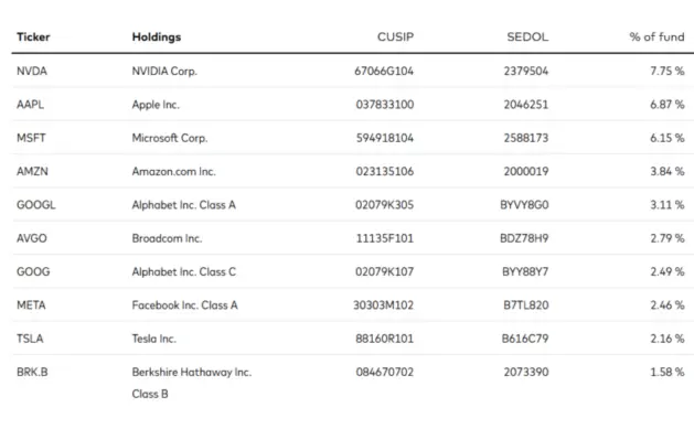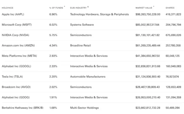 3️⃣VOO 追蹤 S&P 500 的表現。雖然S&P 500 會每一季rebalance,但因為 S&P 用自由流通市值加權 (float-adjusted market-capitalization weighting),即不計算公司內部人士/控股股東/政府持有的股票、公司之間的交叉持股、設有限售條件的股份等的不在大眾流通的股票,所以比重有一定程度會受到個別公司龐大的自由流通市值影響,如NVDA。
